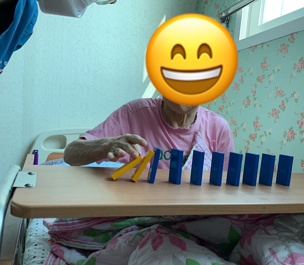 8월 넷째주 치매인지프로그램 도미노 게임입니다. 소근육 운동과 집중력 등에 좋은 활동으로 도미노를 세우는 과정은 어렵지만 다 세우고 난 후 넘어지는 도미노를 보면 뿌듯함을 느낄 수 있습니다. 오늘은 코로나19 때문에 각 생활실에서 프로그램을 진행하였는데많은 분들이 재미있어 하셨습니다.^^ 인쇄 주소