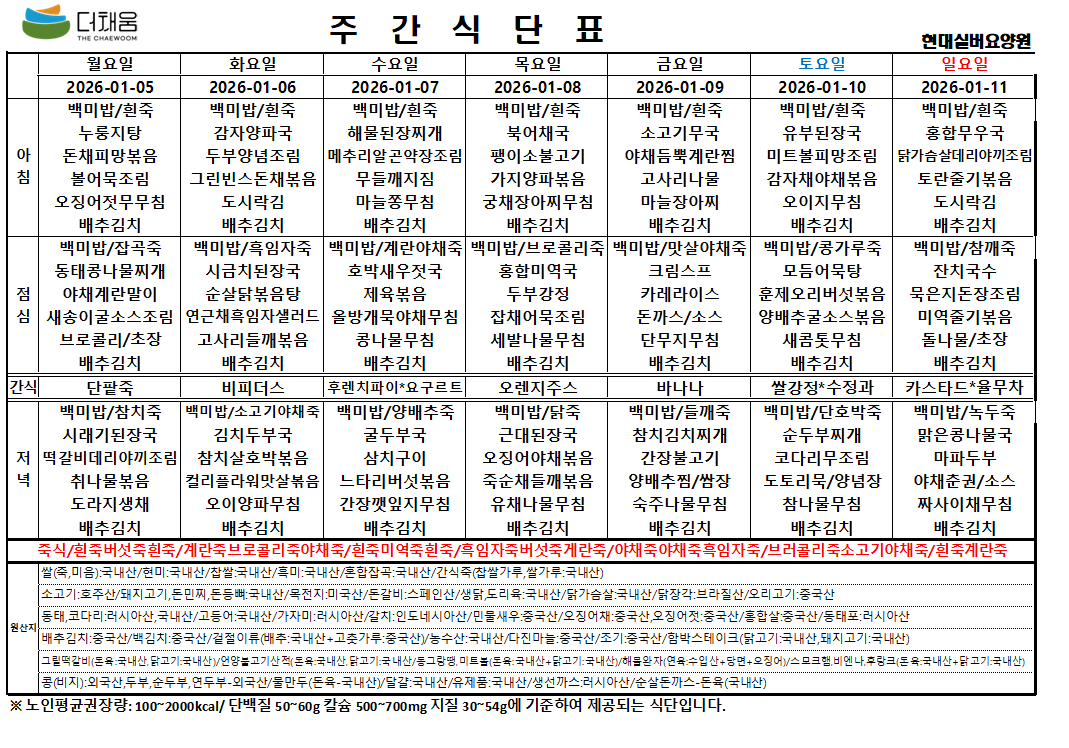 2026년 1월 5일주 주간식단표입니다 ~ > 공지사항